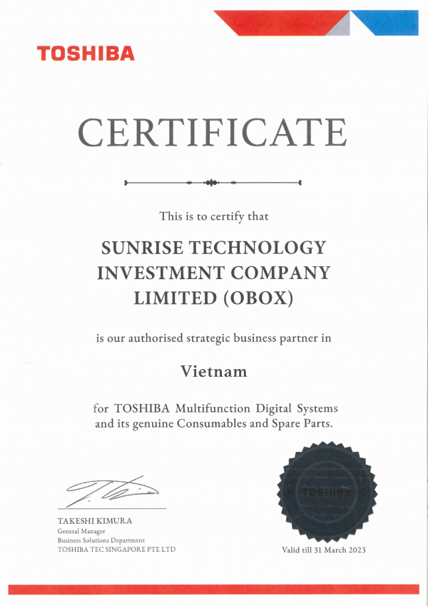 2022: Trở thành nhà phân phối chính thức máy photocopy thương hiệu Toshiba – thuộc Toshiba Tec Singapore, đồng thời hợp tác phân phối mực màu cao cấp Color Point (Đài Loan).